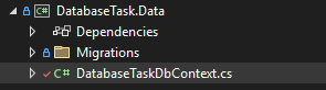 Teed DatabaseTaskDbContext.cs DatabaseTask.Data kausta alla